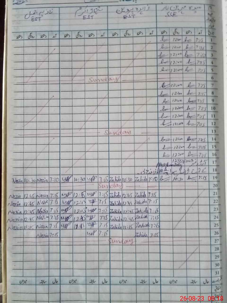 | CNIC | Full Name | Designation | R/C | Absence During Last Calender Month |