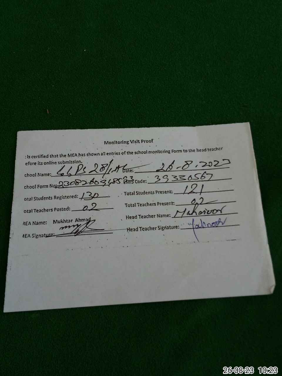 | Certified that this School was Inspected by the Undersigned MEA/DMO Today and the Information Stated Above is as Per Record. | |||||
