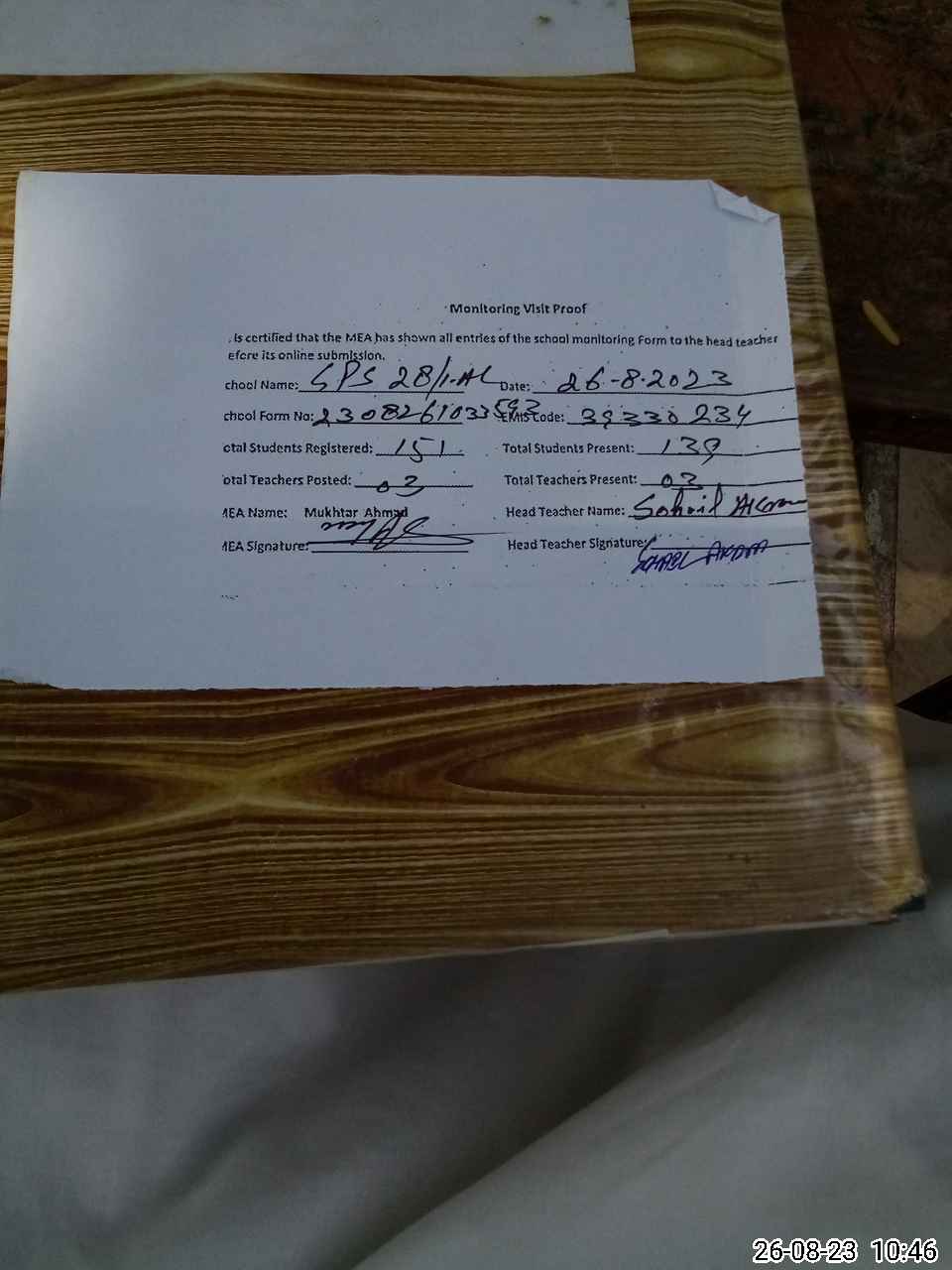| EMIS Code: 39330234 | Name of School: GPS CHAK 28/1-AL | |||