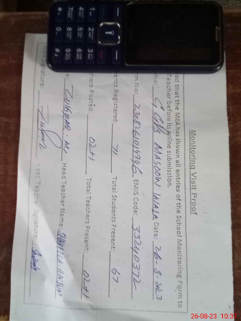 | Name: SH**** AN**** Designation: (School Headmaster's/Headmistress's) ESE Phone/Cell Number: 03**** |