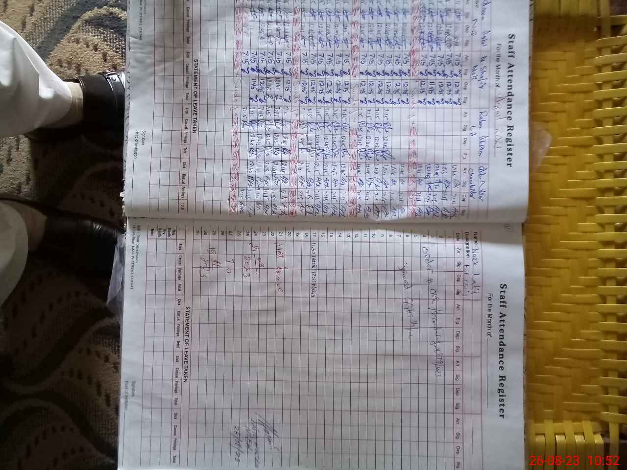 | Monitoring Date: 26-08-2023 | Start Time: 26-08-2023 10:36 AM | End Time: 26-08-2023 10:52 AM | Name of MEA: SA**** HU**** (R**** | |