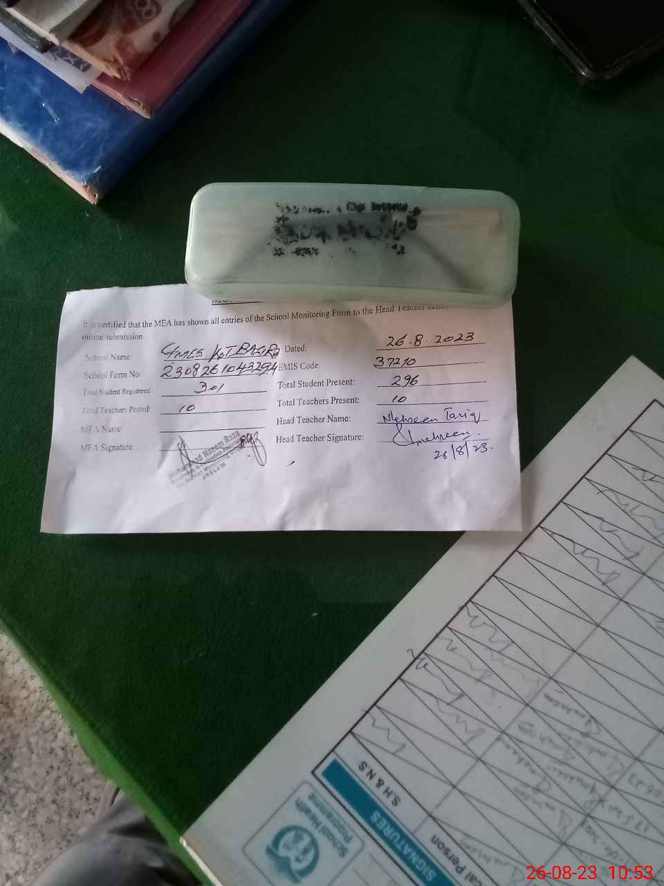 | Attendance Register | Head Teacher | MEA with School | Visit Proof |