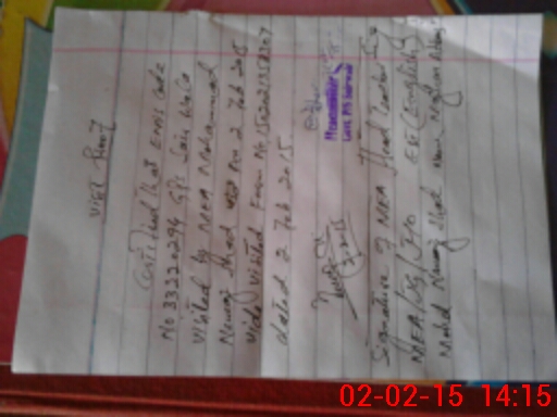 | School Visited by School Health & Nutrition Supervisor (No. of Visits) | 1 | Name1: | Tasneem Fatima | Name2: | |