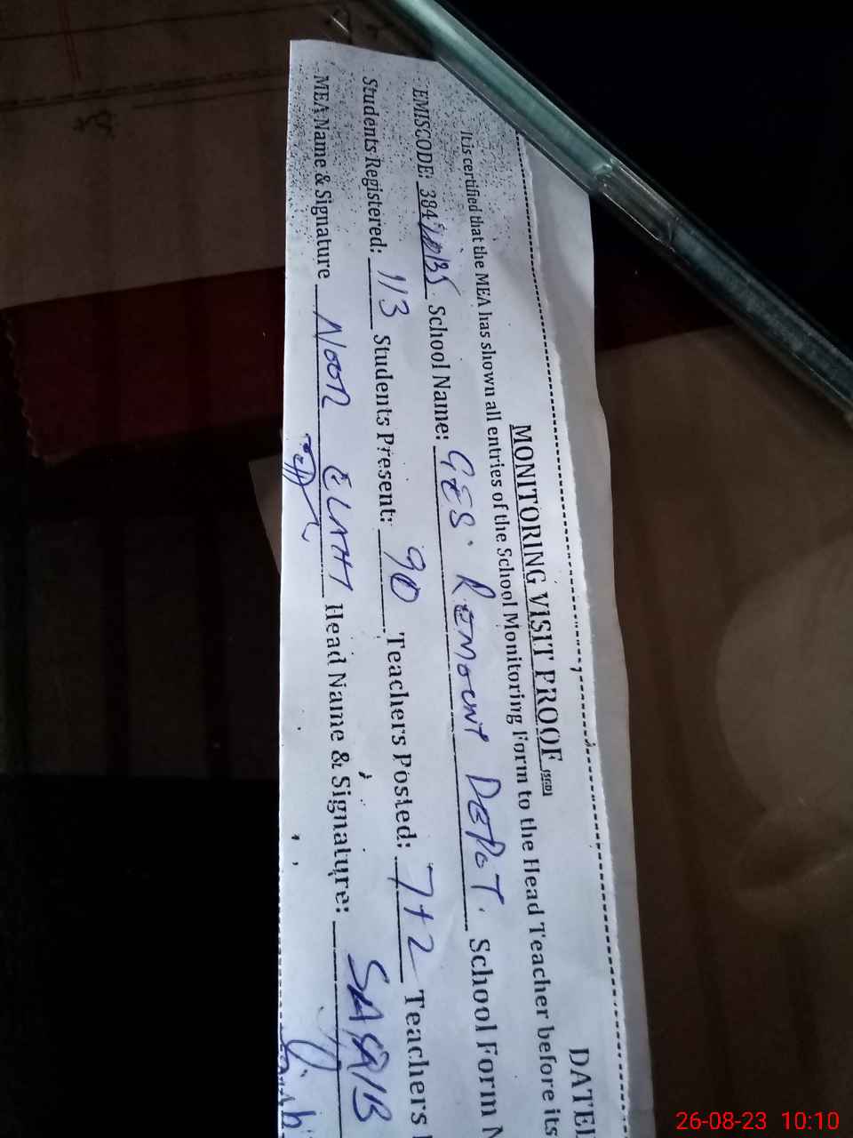 | Attendance Register | Head Teacher | MEA with School | Visit Proof |