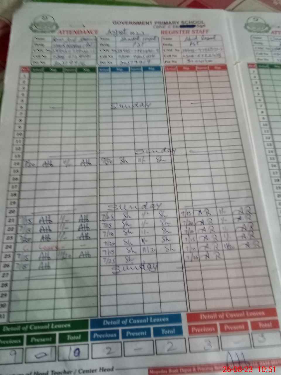 | Name: Um**** Ta**** Designation: (School Headmaster's/Headmistress's) PST Phone/Cell Number: 03**** |