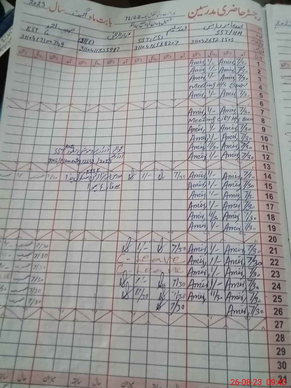 | Name: Mu**** Na**** La**** Designation: (School Headmaster's/Headmistress's) HM Phone/Cell Number: 03**** |