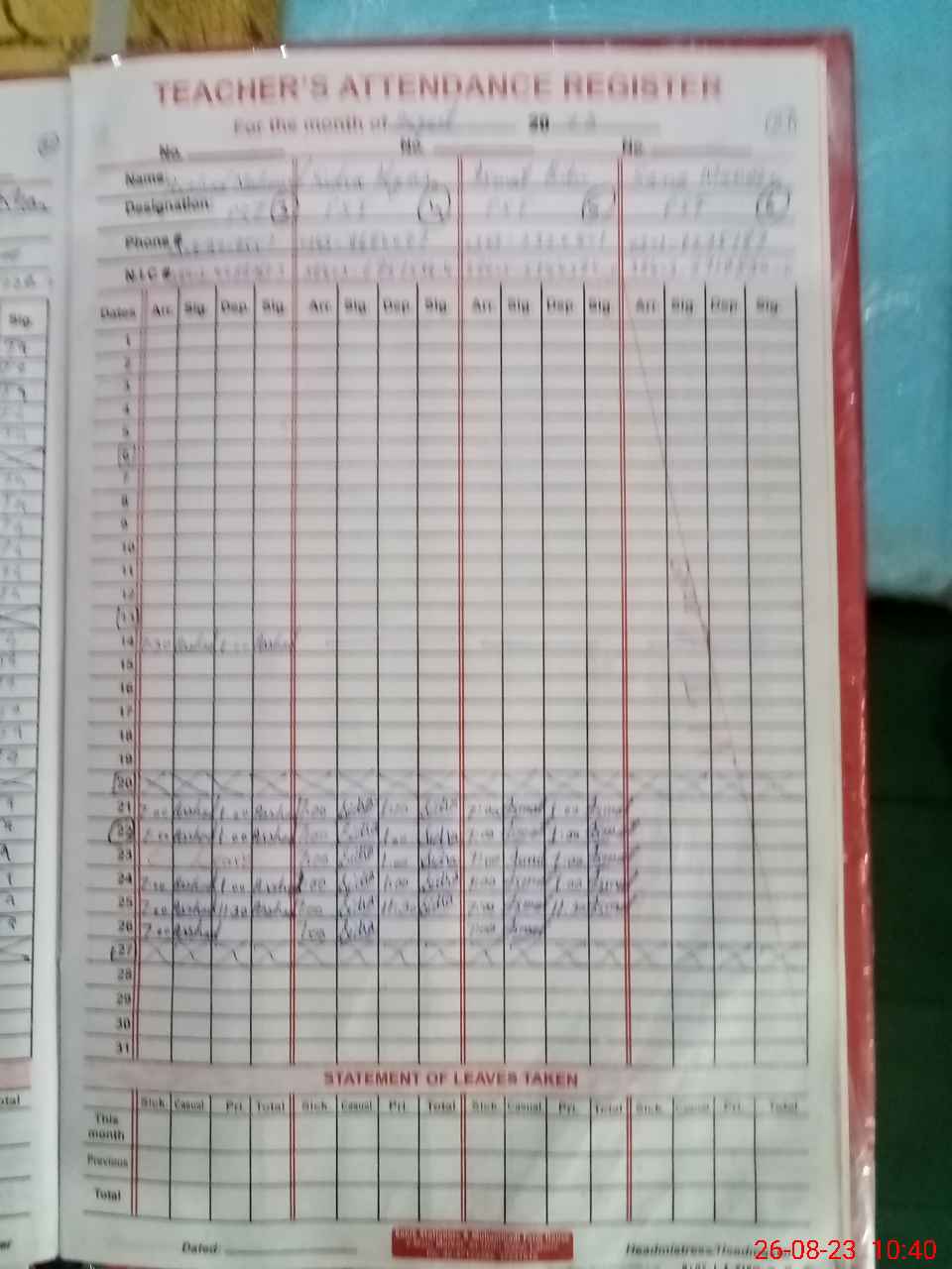 | Name: Um**** Hu**** Designation: (School Headmaster's/Headmistress's) PST Phone/Cell Number: 03**** |