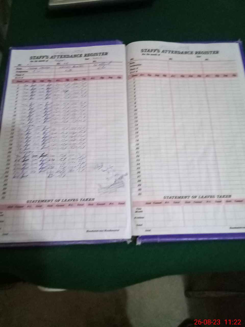 | Leave | Duty | Absent | Maternity | Medical | Ex- Pak |