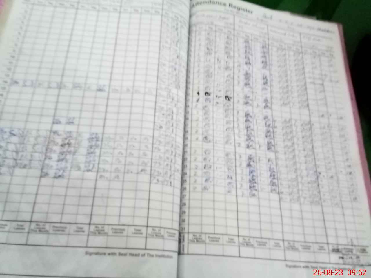 | No. of Students Present - Male | 0 | 0 | 0 | 0 | 0 | 0 | 0 | 0 | 52 | 41 | 65 | 146 | 108 | 412 | ||