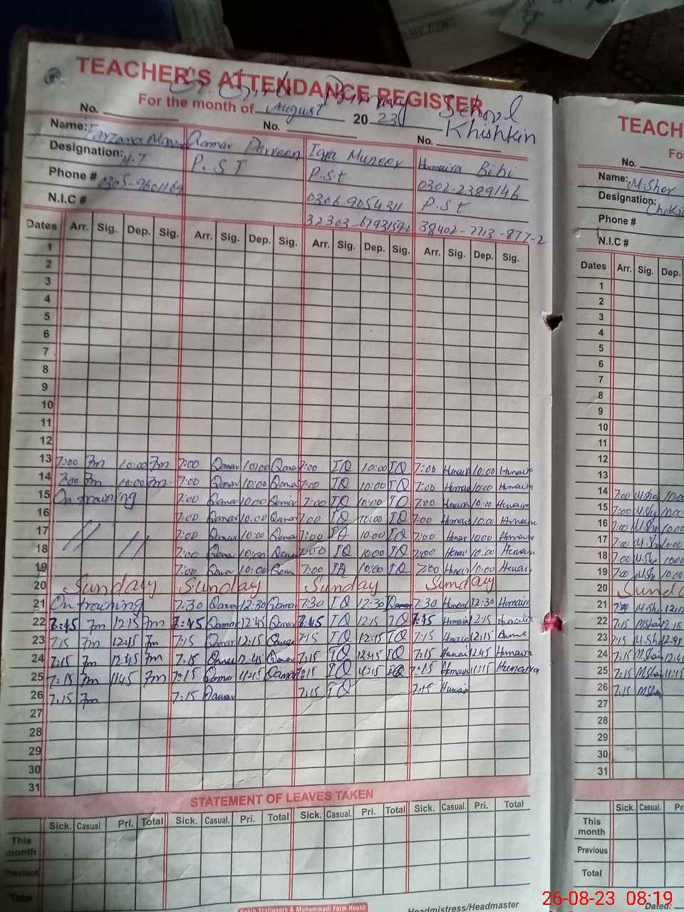 | Name: FA**** MA**** Designation: (School Headmaster's/Headmistress's) PTC/JV Phone/Cell Number: 03**** |