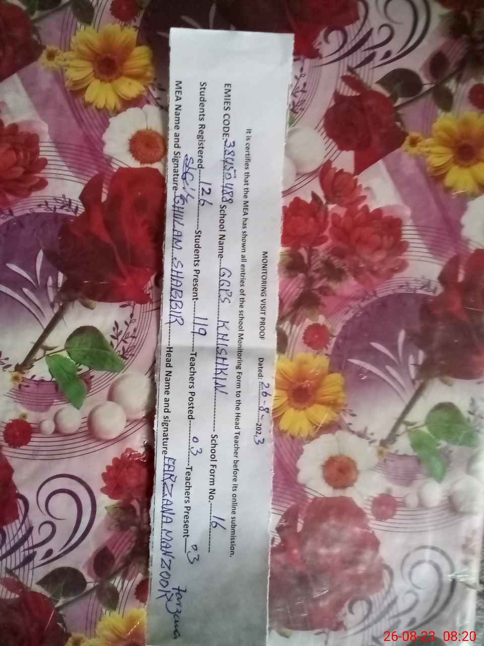 | EMIS Code: 38450488 | Name of School: GGPS KHISHKAN | |||