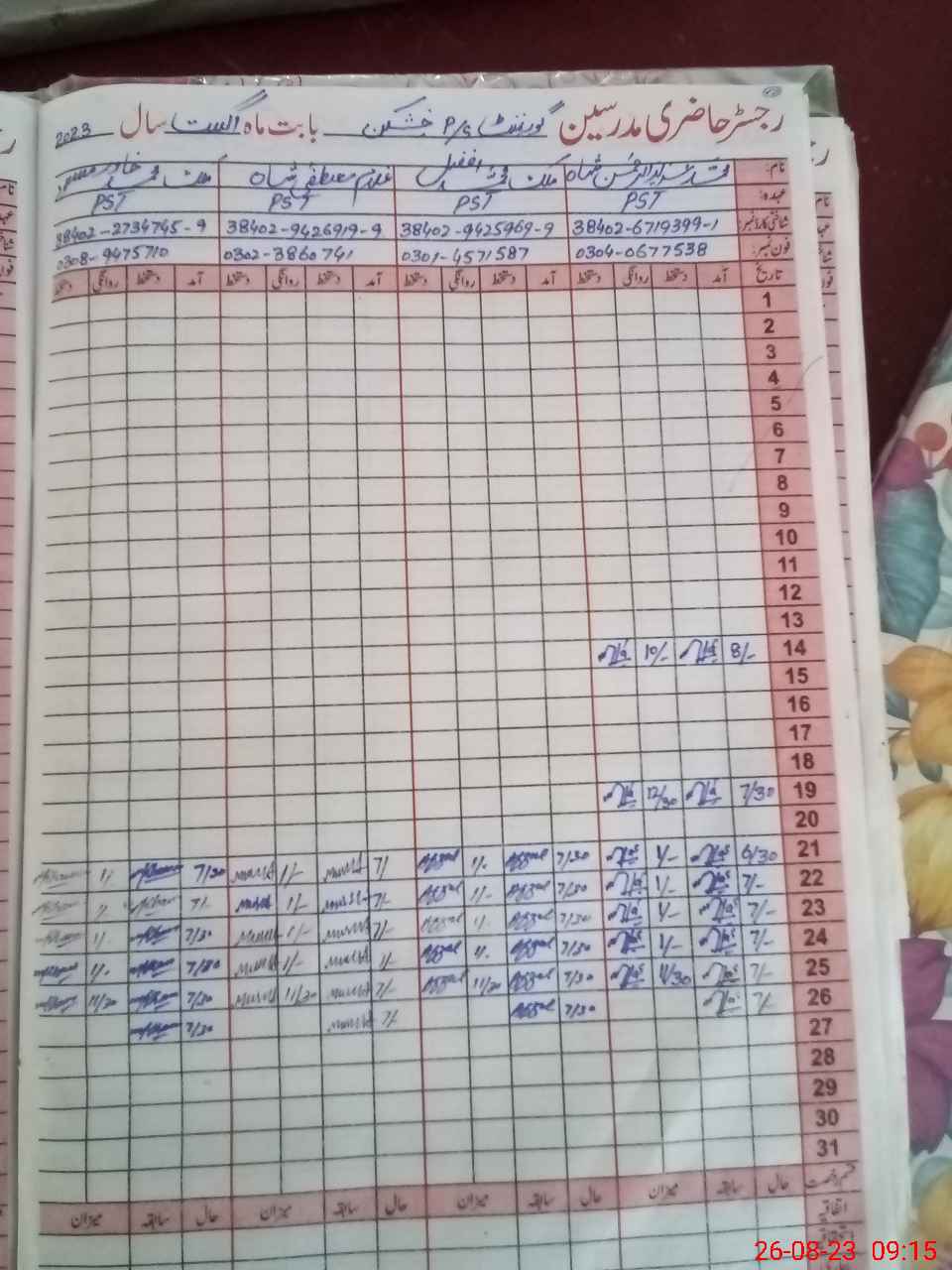 | Name: MU**** AZ**** URRE**** Designation: (School Headmaster's/Headmistress's) ESE (SCI-MATH ) Phone/Cell Number: 03**** |