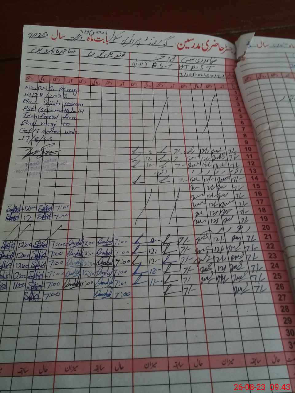 | Name: ZI**** ULQA**** Designation: (School Headmaster's/Headmistress's) PST Phone/Cell Number: 03**** |