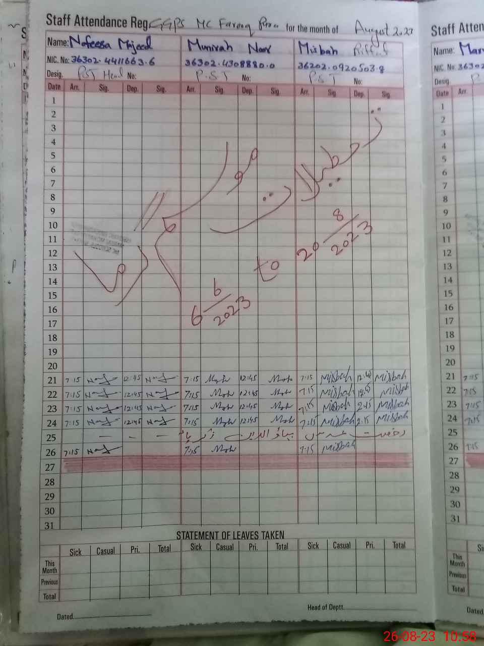 | CNIC | Full Name | Designation | R/C | Absence During Last Calender Month |