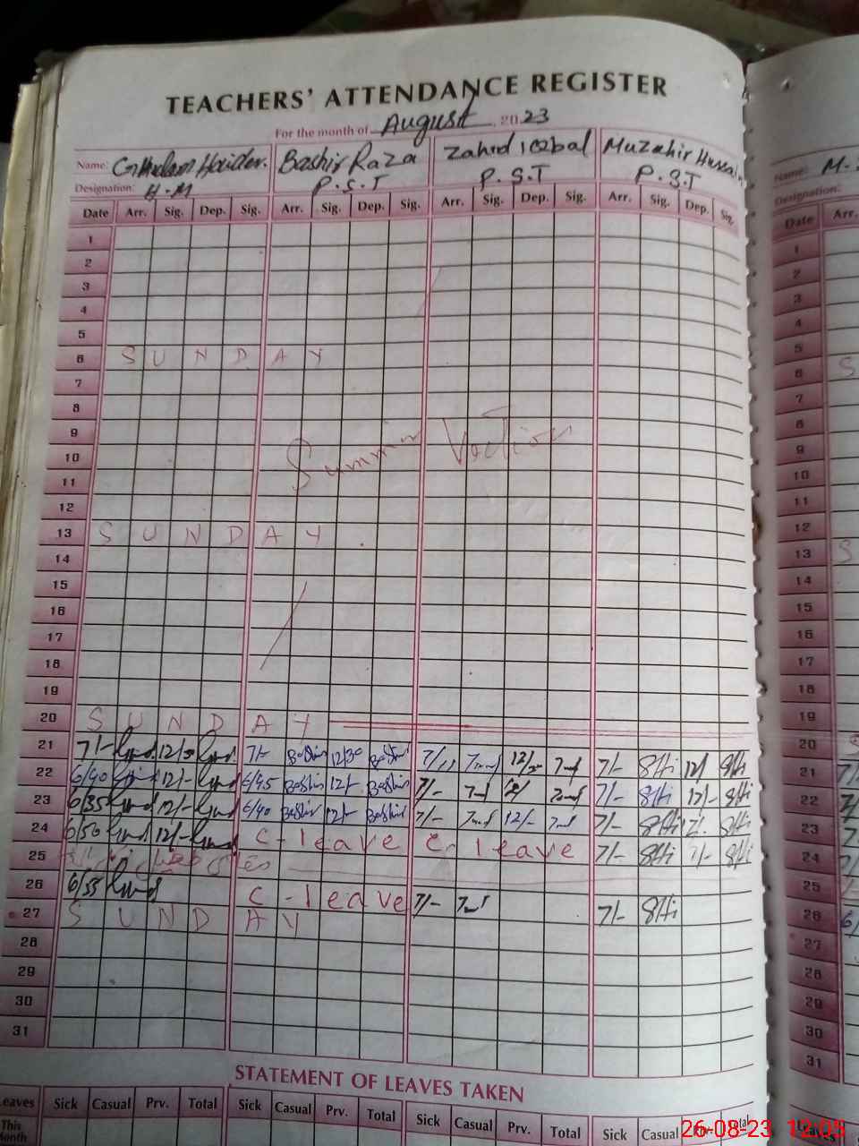 | 36**** | Ba**** Ra**** | PST | Regular | 0 | 0 | 0 | 0 | 0 | 0 | 0 | 0 | 0 | Casual |