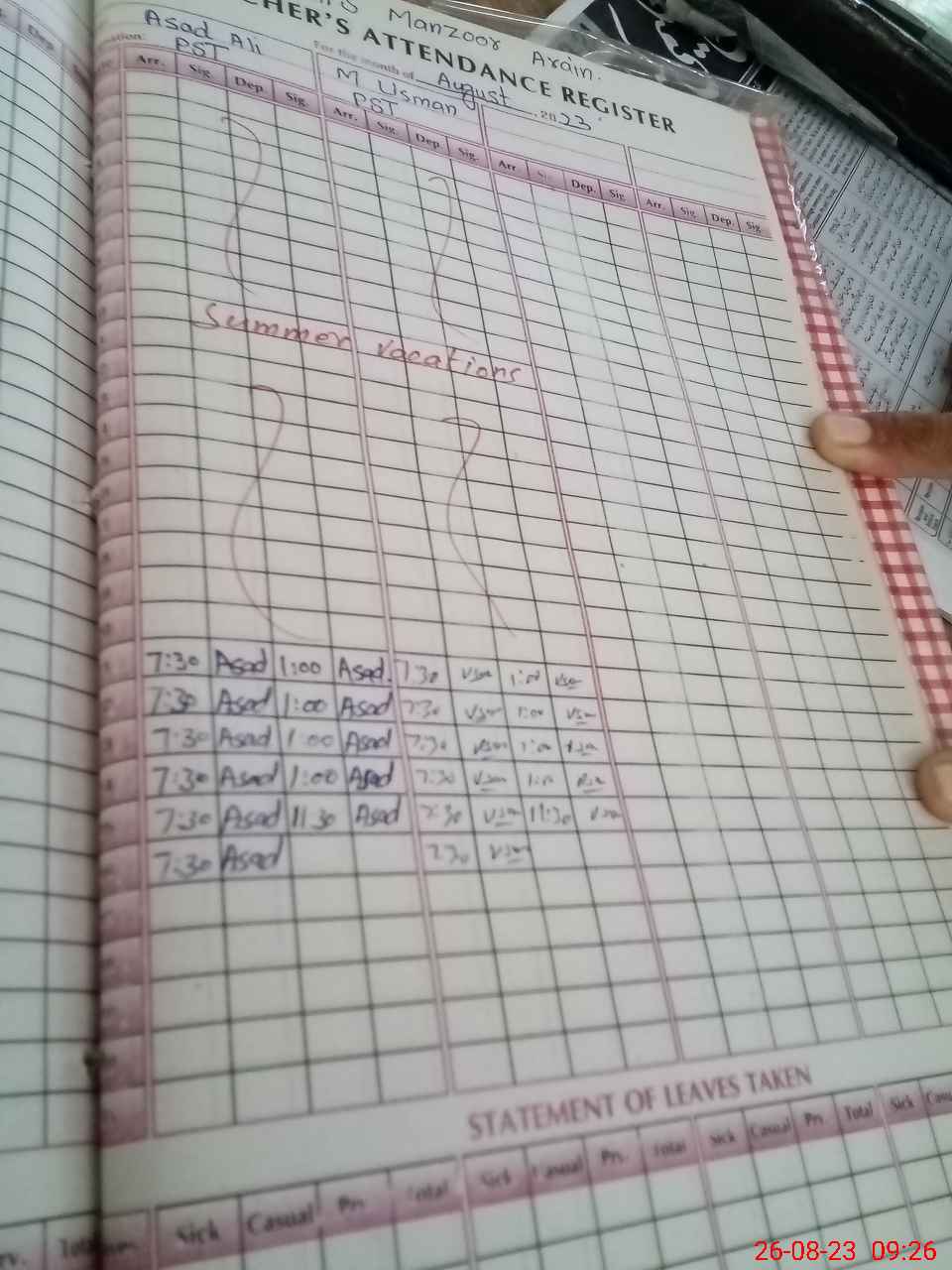 | Name: As**** Al**** Designation: (School Headmaster's/Headmistress's) PST Phone/Cell Number: 03**** |