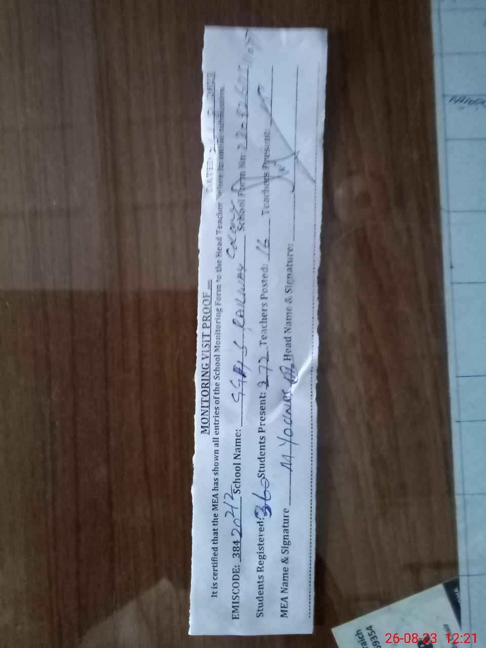 | Monitoring Date: 26-08-2023 | Start Time: 26-08-2023 11:51 AM | End Time: 26-08-2023 12:21 PM | Name of MEA: MU**** YO**** | |