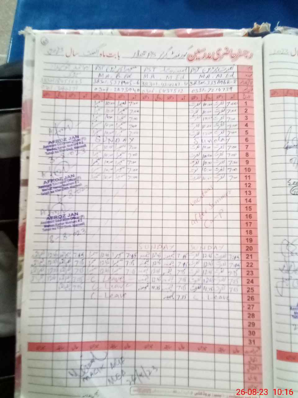 | Name: NU**** PE**** Designation: (School Headmaster's/Headmistress's) PST Phone/Cell Number: 03**** |