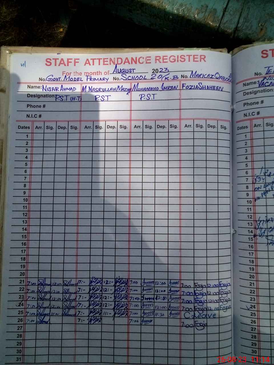 | Name: FO**** SH**** Designation: (School Headmaster's/Headmistress's) PST Phone/Cell Number: 03**** |