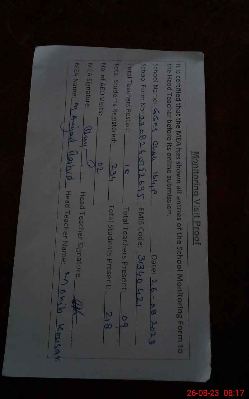 | Certified that this School was Inspected by the Undersigned MEA/DMO Today and the Information Stated Above is as Per Record. | |||||