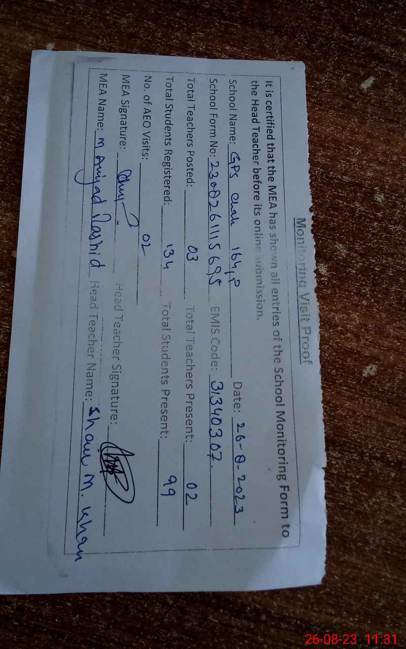 | EMIS Code: 31340307 | Name of School: GPS CHAK NO 164/P | |||