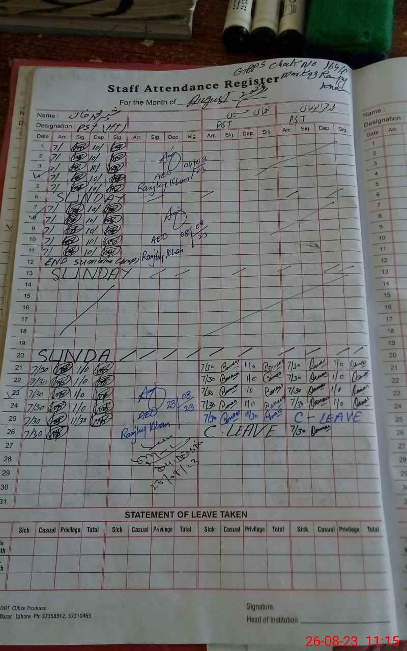 | Name: No**** Hu**** Designation: (School Headmaster's/Headmistress's) PST Phone/Cell Number: 03**** |