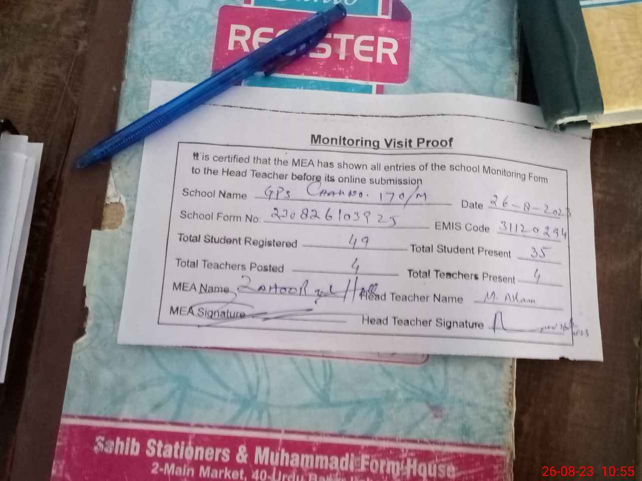 | EMIS Code: 31120294 | Name of School: GPS CHAK NO. 170/M | |||