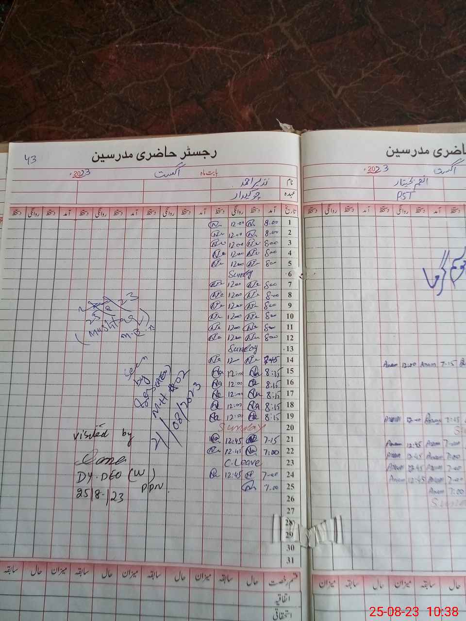 | Name: An**** Ba**** Designation: (School Headmaster's/Headmistress's) PST Phone/Cell Number: 03**** |