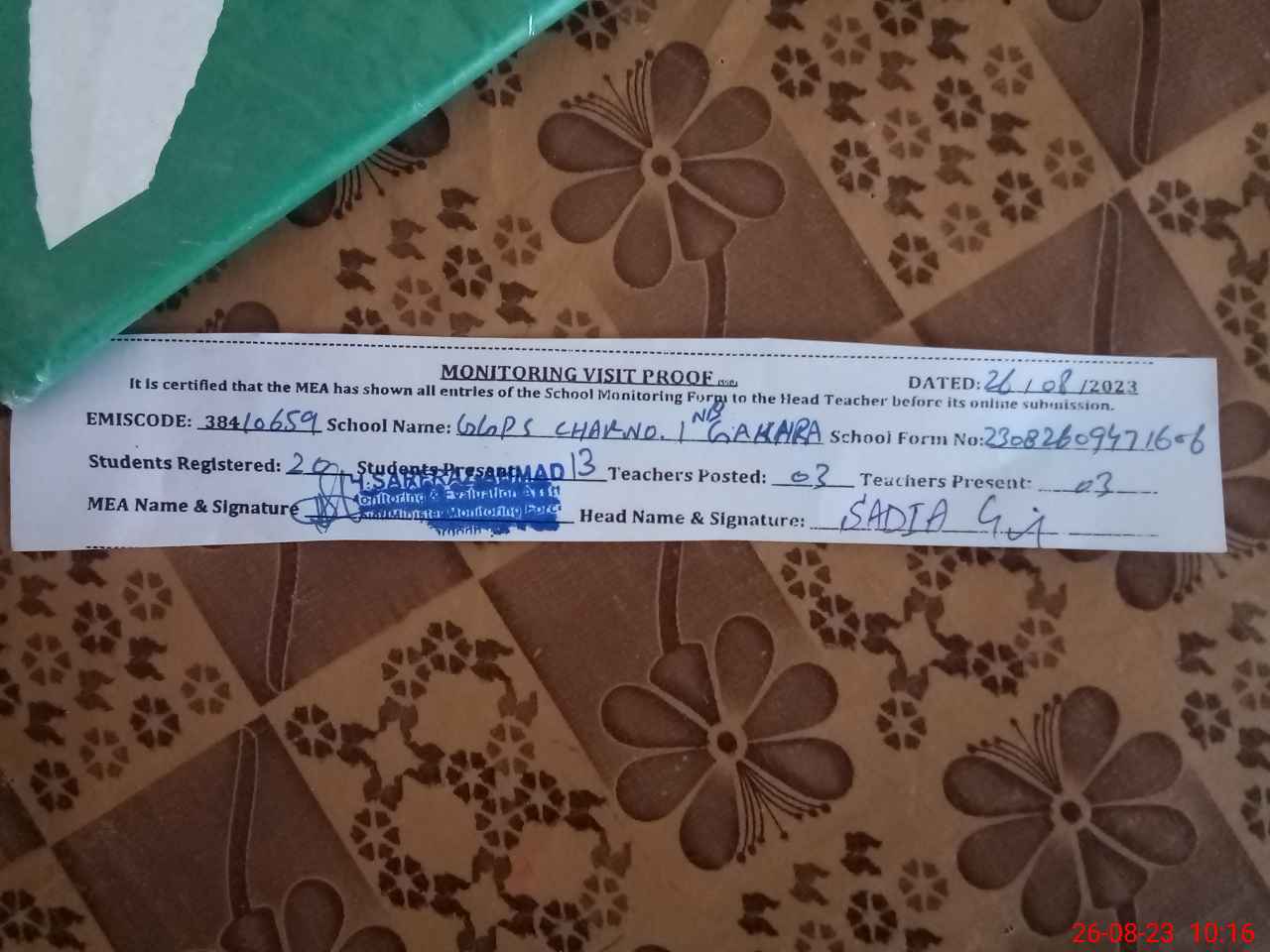 | EMIS Code: 38410659 | Name of School: GGPS CHAK NO.1 NB GHAKRA | |||
