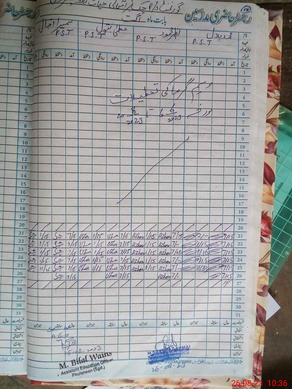 | Name: MU**** BI**** Designation: (School Headmaster's/Headmistress's) PST (SCI-MATH) Phone/Cell Number: 03**** |