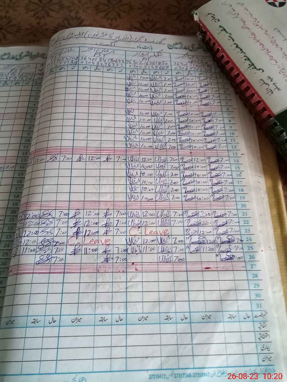 | CNIC | Full Name | Designation | R/C | Absence During Last Calender Month |