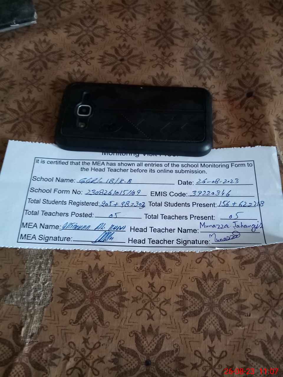 | Name: MU**** JA**** Designation: (School Headmaster's/Headmistress's) PST Phone/Cell Number: 03**** |