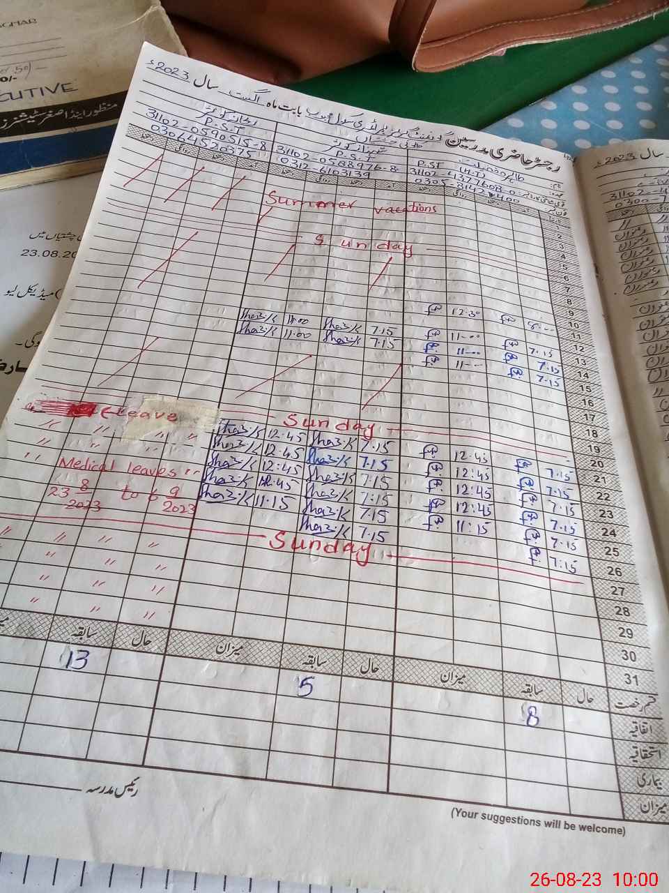 | Leave | Duty | Absent | Maternity | Medical | Ex- Pak |