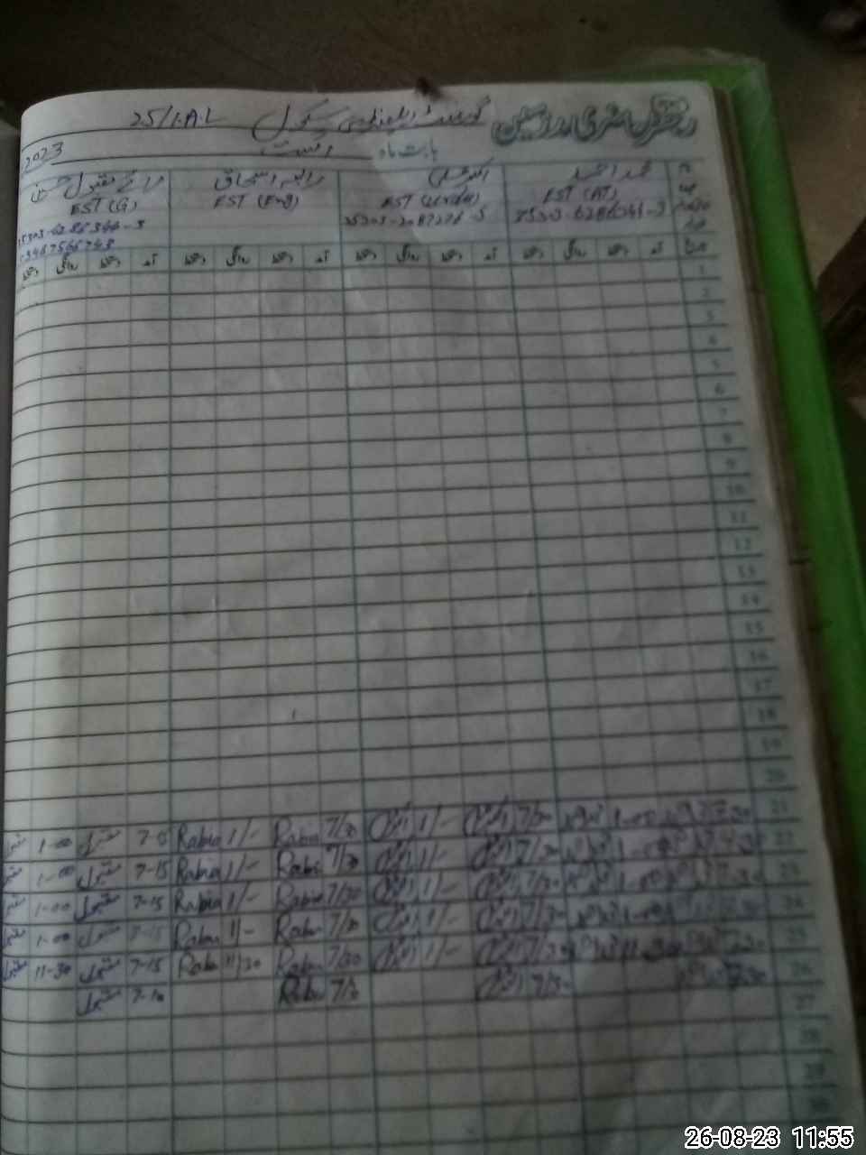| CNIC | Full Name | Designation | R/C | Absence During Last Calender Month |