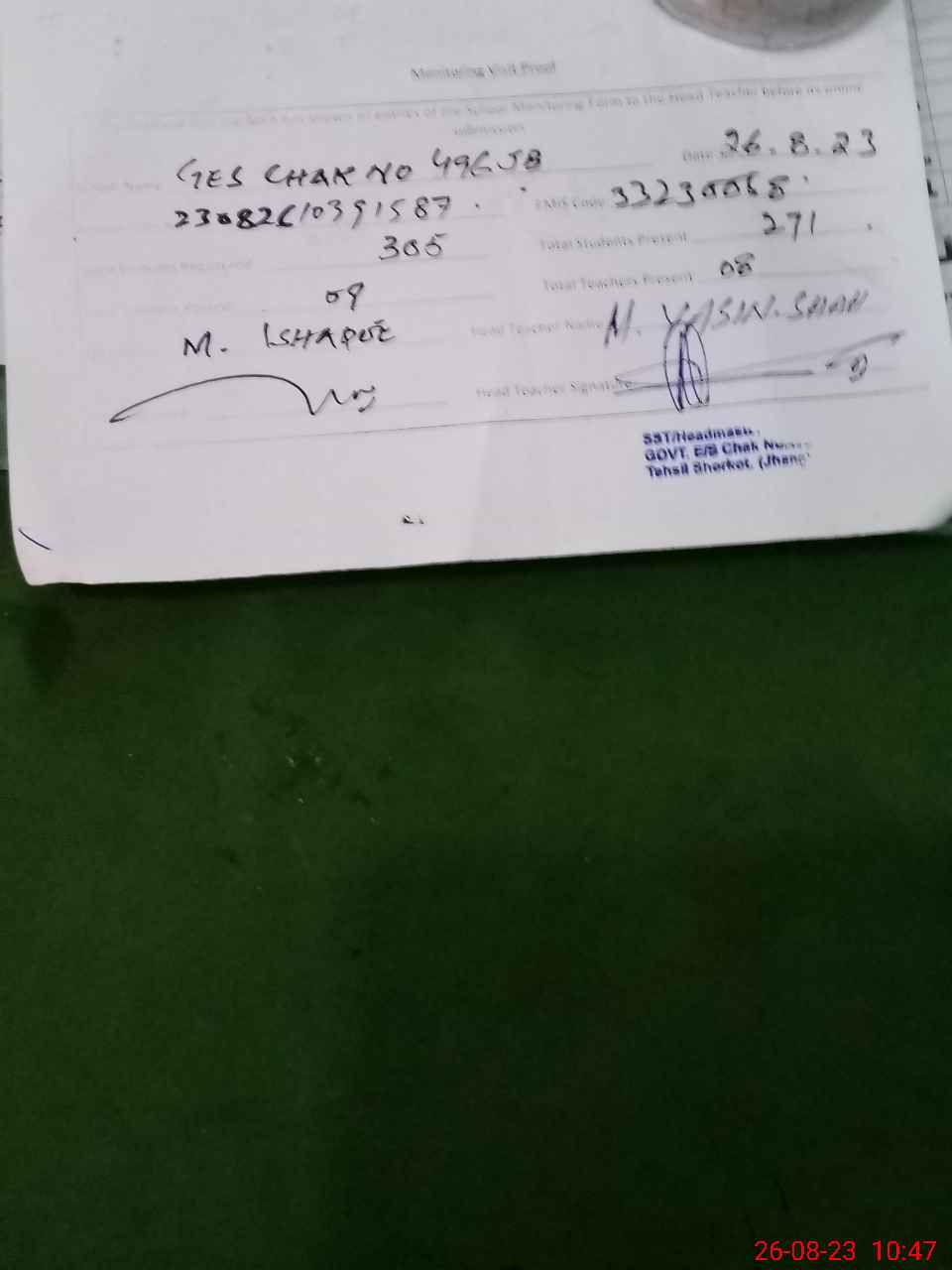 | Name: MU**** YA**** Designation: (School Headmaster's/Headmistress's) SST Phone/Cell Number: 03**** |