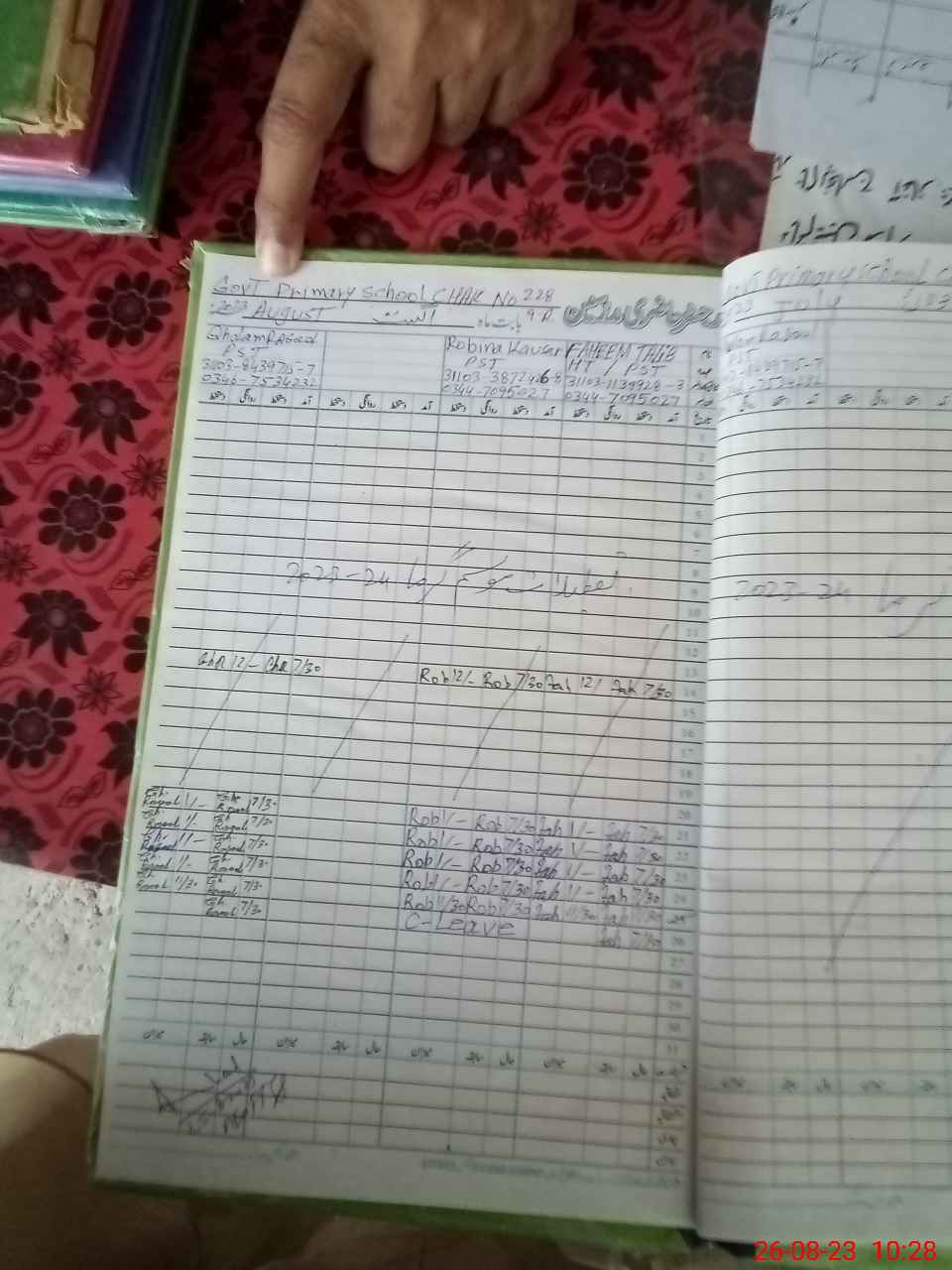 | Name: Fa**** Ta**** Designation: (School Headmaster's/Headmistress's) PST Phone/Cell Number: 03**** |