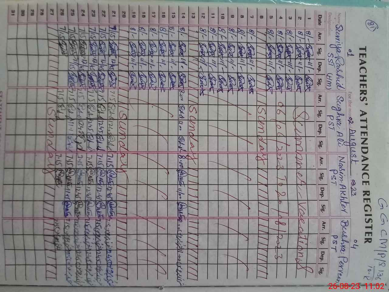 | Name: Na**** Sh**** Designation: (School Headmaster's/Headmistress's) I/C Hm(Pst) Phone/Cell Number: 03**** |