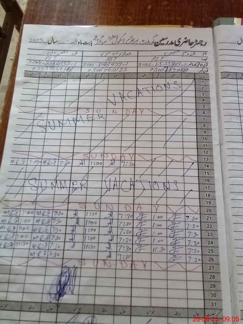 | Monitoring Date: 26-08-2023 | Start Time: 26-08-2023 08:51 AM | End Time: 26-08-2023 09:20 AM | Name of MEA: Ma**** Ah**** BN**** 20 | |
