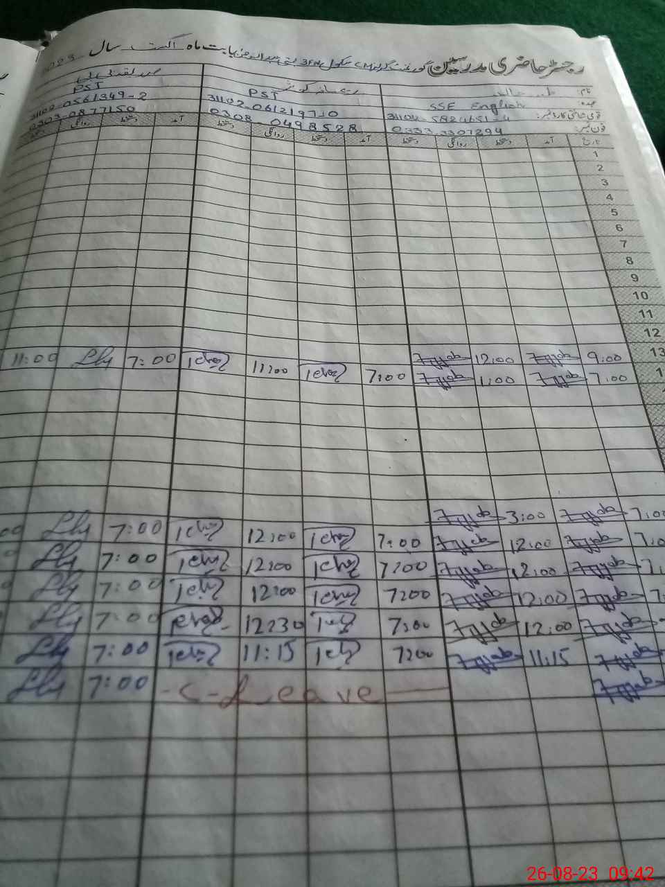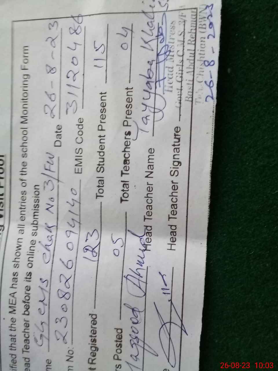 | Name: TA**** KH**** Designation: (School Headmaster's/Headmistress's) SSE ENG Phone/Cell Number: 03**** |