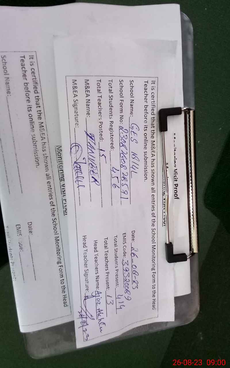 | Attendance Register | Head Teacher | MEA with School | Visit Proof |