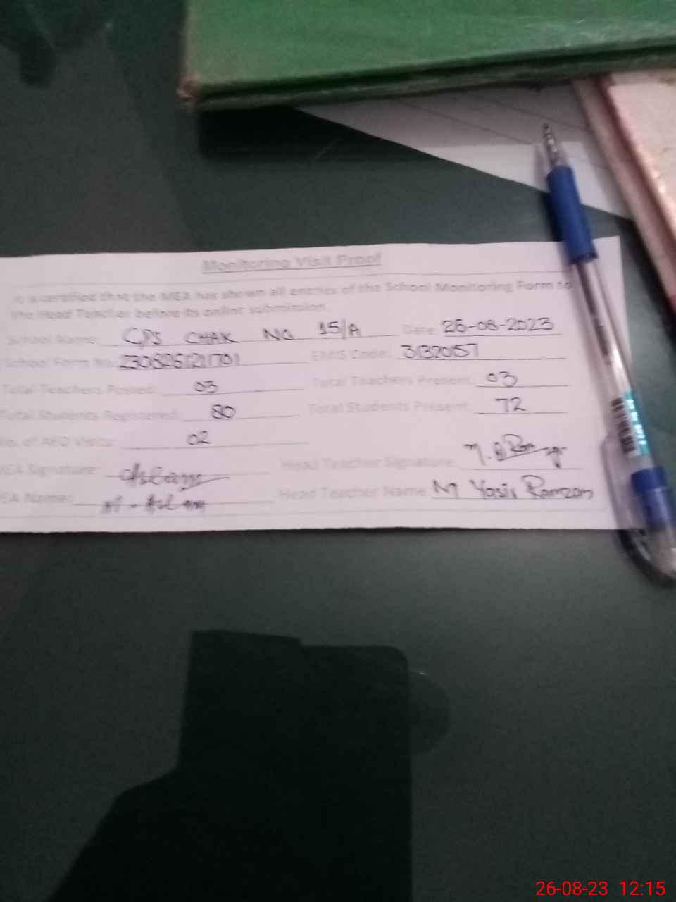 | EMIS Code: 31320157 | Name of School: GPS CHAK 15/A | |||