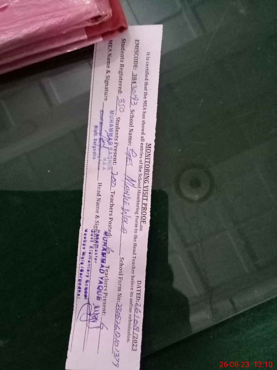 | EMIS Code: 38430193 | Name of School: GHS MANKEY WALA | |||
