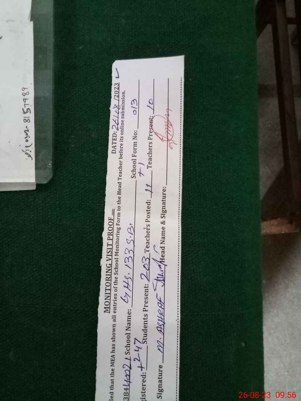 | Name: MU**** IM**** Designation: (School Headmaster's/Headmistress's) SST ARTS Phone/Cell Number: 03**** |
