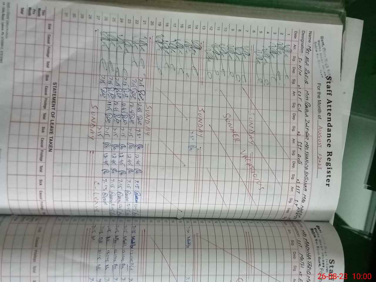 | Monitoring Date: 26-08-2023 | Start Time: 26-08-2023 09:28 AM | End Time: 26-08-2023 10:59 AM | Name of MEA: Kh**** Iq**** | |