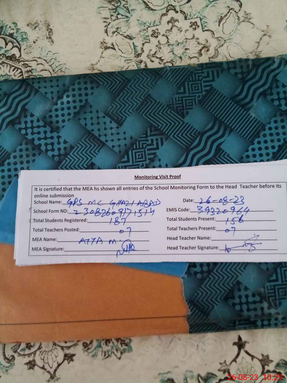 | EMIS Code: 39320964 | Name of School: GPS MC GHAZI ABAD | |||