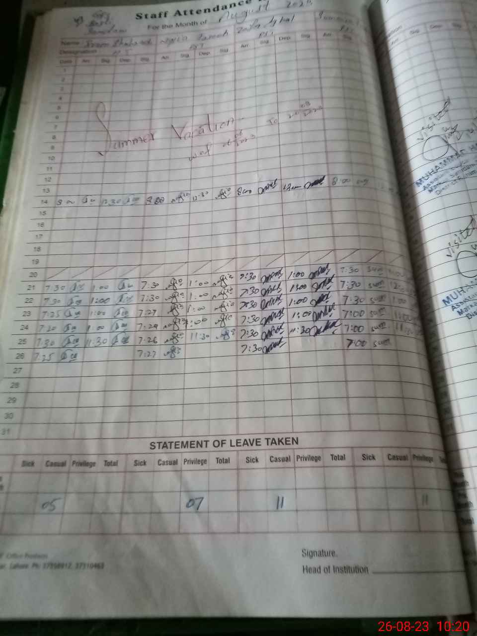 | Name: Er**** Sh**** Designation: (School Headmaster's/Headmistress's) EST Phone/Cell Number: 03**** |