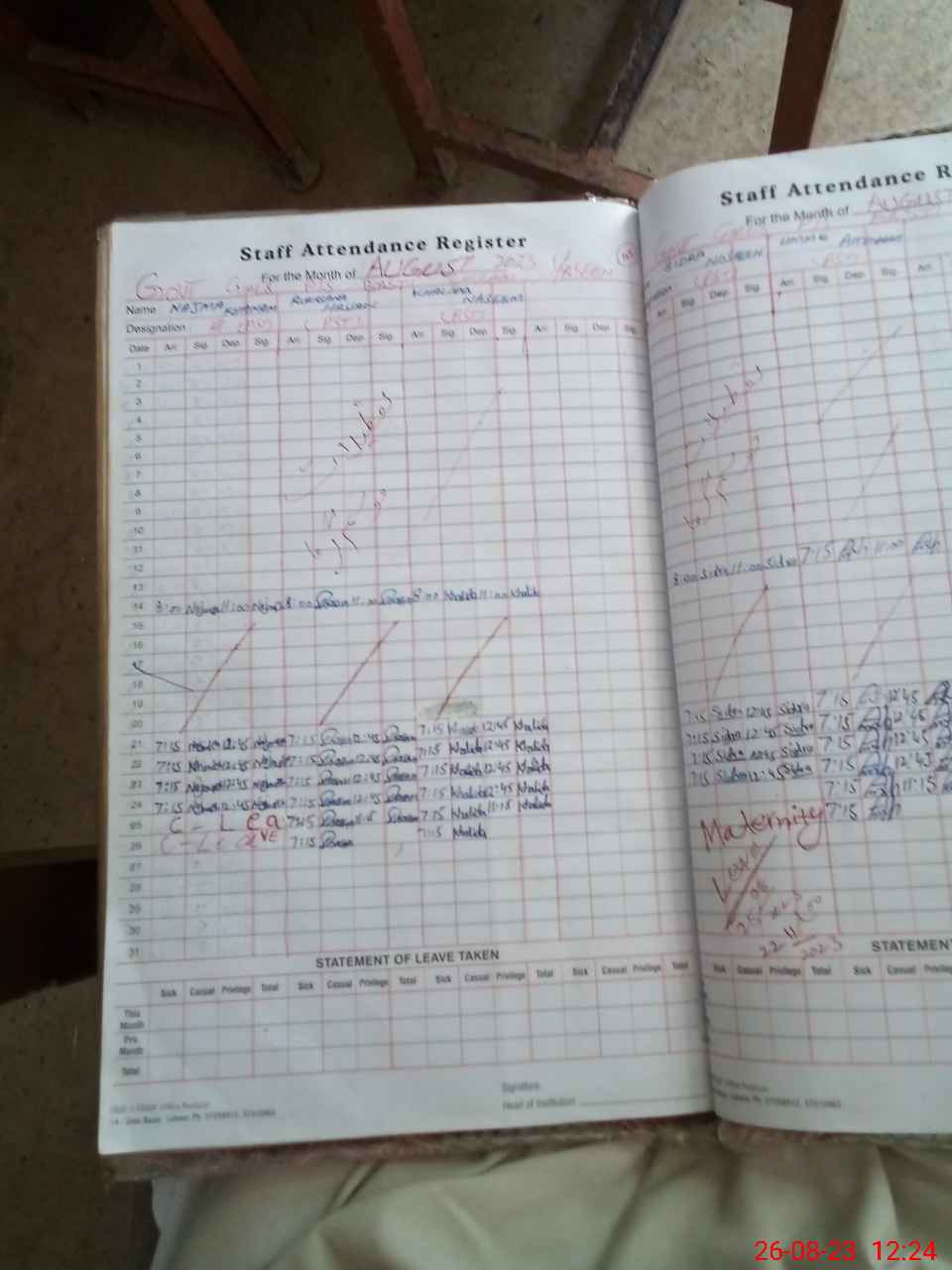| Leave | Duty | Absent | Maternity | Medical | Ex- Pak |