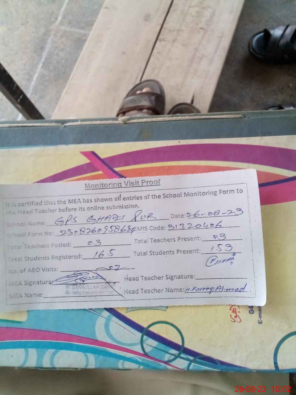 | EMIS Code: 31320406 | Name of School: GPS GHAZI PUR | |||