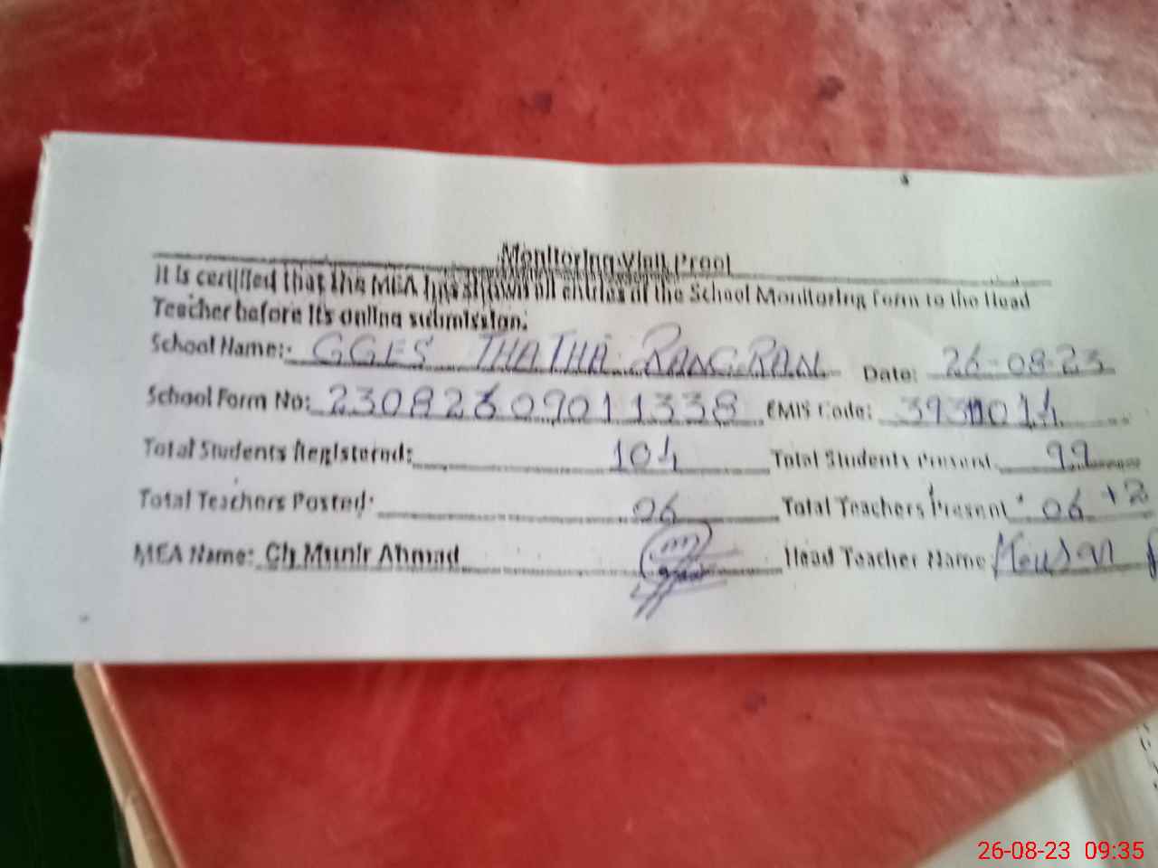 | EMIS Code: 39311014 | Name of School: GGES THATHA RANGRAN WALA | |||