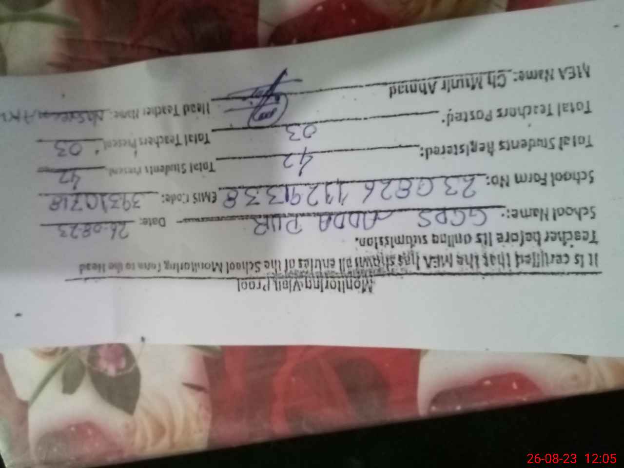 | Certified that this School was Inspected by the Undersigned MEA/DMO Today and the Information Stated Above is as Per Record. | |||||